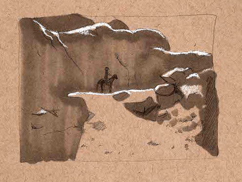 Like I mentioned above, this “cliff” is only about two feet tall, but its given the perfect reference for a horse and rider on a steep trail. (below)