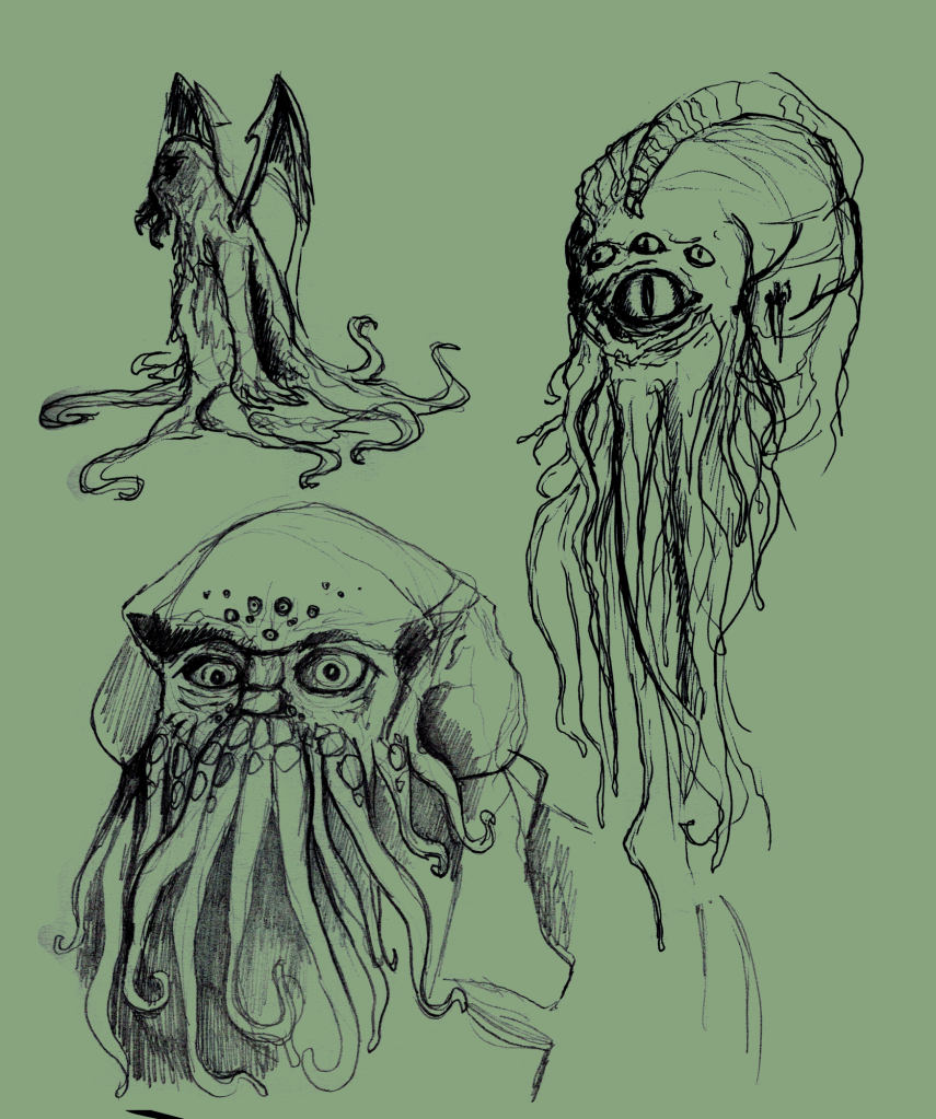And for fun, here are some sketches of some Cthulhu-esque creatures from last week: